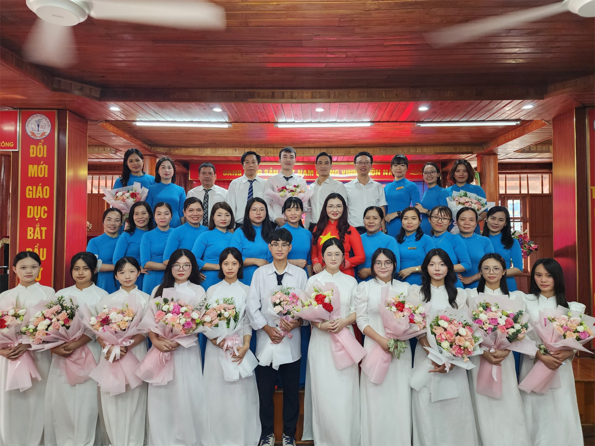 húc mừng 14 quần chúng ưu tú là: Lê Thị Thúy Mơ, Nguyễn Ánh Quyên, Phạm Thế Hoàng và 11 quần chúng học sinh đã được xét kết nạp vào Đảng cộng sản Việt Nam. Hy vọng trong thời gian tới, 14 đồng chí sẽ tiếp tục cống hiến và xây dựng Chi bộ nhà trường đoàn kết, vững mạnh.