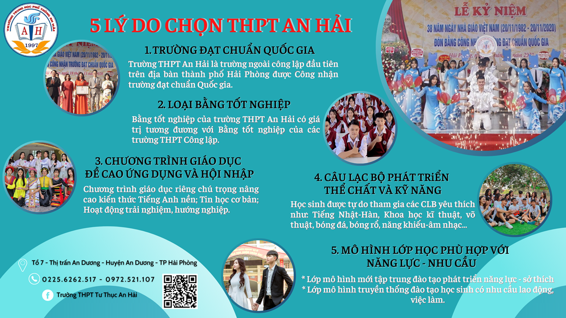 Trong nhiều năm qua trường THPT An Hải đã và đang trở thành địa chỉ giáo dục tin cậy, là trường Ngoài công lập đầu tiên trên địa bàn thành phố Hải Phòng đạt Trường chuẩn quốc gia.