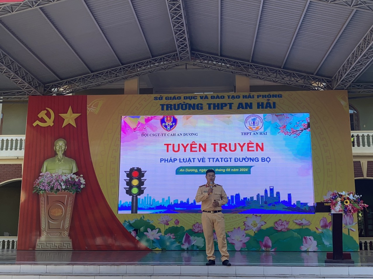 Sau phần văn nghệ chào mừng và phát biểu khai mạc của thầy giáo Nguyễn Quang Hiếu- Phó hiệu trường nhà trường, các em học sinh trường THPT An Hải đã được đồng chí thượng uý Trần Thế Mạnh- Cán bộ tuyên truyền viên của đội cảnh sát giao thông huyện tuyên truyền phổ biến kiến thức về luật an toàn giao thông với nội dung rất thiết thực và ý nghĩa như thực trạng tai nạn giao thông trong quý 1/2024, xem các video về các vụ tai nạn trong học sinh, tìm hiểu về các nguyên nhân tai nạn giao thông, tìm hiểu về điểm mù của các phương tiện giao thông và cách khắc phục. Đặc biệt các em học sinh nhà trường đã sôi nổi tham gia giao lưu trả lời câu hỏi tìm hiểu về một số quy định luật giao thông rất gần gũi, thiết thực.