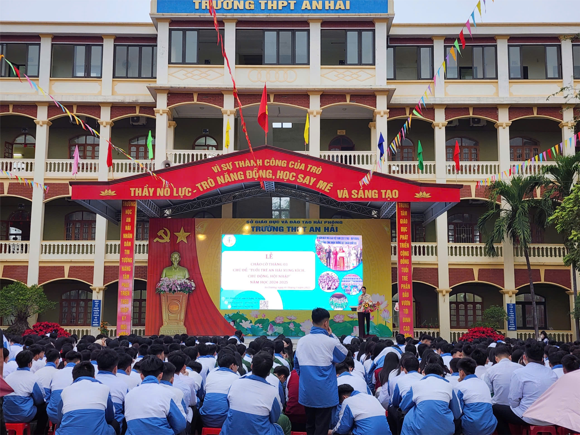 Sáng nay, thứ 2 ngày 03 tháng 3, trường THPT An Hải tổ chức Lễ chào cờ với chủ đề "Tuổi trẻ An Hải xung kích, chủ động, hội nhập"