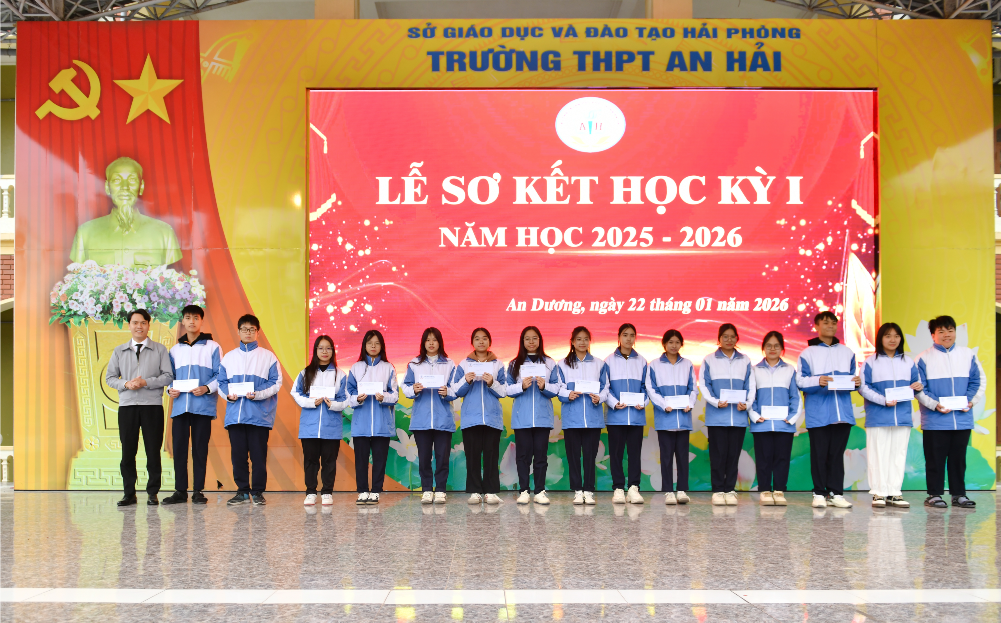 Lễ sơ kết học kì I là dịp quan trọng để thầy và trò Trường THPT An Hải cùng nhìn lại chặng đường đã qua, đồng thời tạo động lực để tiếp tục phấn đấu, quyết tâm hoàn thành tốt các nhiệm vụ đề ra trong học kì II và cả năm học 2025–2026.